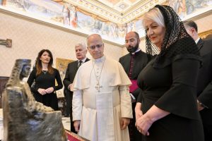 Hrvatski politički predstavnici izvršne i zakonodavne vlasti iz BiH uručili su Svetom Ocu i prigodne darove – statuu portreta kraljice Katarine Kosače, koja je pokopana u rimskoj crkvi Santa Maria Aracoeli. Dopredsjedatelj Čović uručio je Papi Lavu XIV dres Hrvatskog športskog kluba Zrinjski Mostar na kojem u posveti stoji poziv Svetom Ocu da posjeti Mostar iduće godine, o čemu je prethodno upoznao mjesnog biskupa Petra Palića.